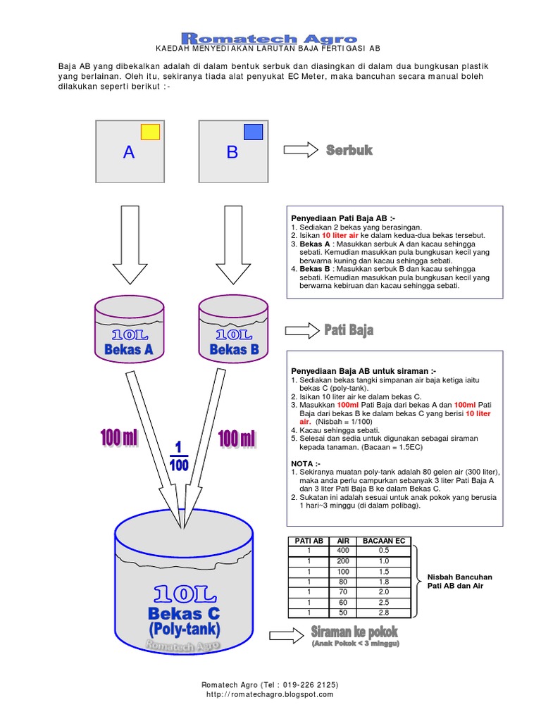 Belajar cara buat baja AB dan bancuh dengan 10 bahan fertigasi. CATEGORIES Informations Tips. Sila pastikan komponen baja mengikut spesifikasi pengeluar.